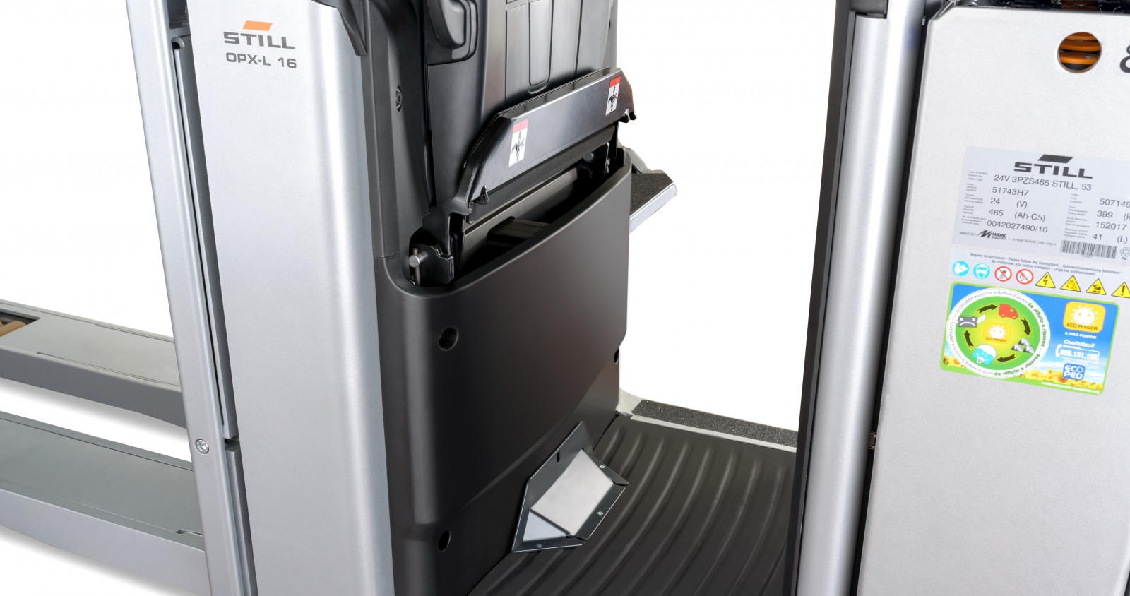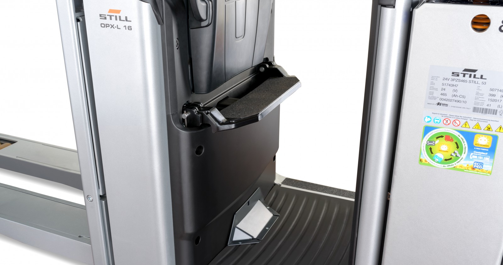 İsteğe bağlı olarak seçilebilen yükseltilebilir sürücü platformu ile istenirse OPX sizi kelimenin tam anlamıyla uçurabilir. Bu sadece kabini 2,80 m toplama yüksekliğine yükseltmekle kalmaz, aynı zamanda STILL Easy Drive direksiyon simidini de yükseltir. Bu özellik, aracı yükselttiğiniz seviyede manevra yapabileceğiniz ve doğrudan bir sonraki toplama istasyonuna geçebileceğiniz anlamına gelir ve bu sayede değerli zamanınızdan tasarruf edebilmenize imkan sağlar. Akü kapasiteleri 620 Ah’ye kadar geniş bir aralığa uygundur. Tüm modeller Li-Ion akü ile de mevcuttur: Böylelikle, kısa ara şarj molaları ile 24 saat operasyona hazır olunur.