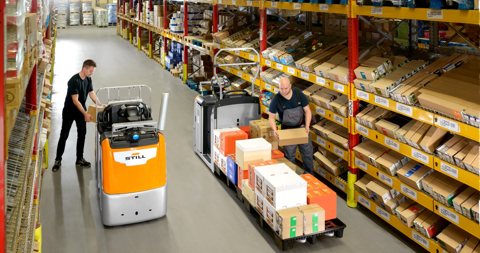 Katlanabilir basamak ve yükseltilebilir operatör platformu ile birinci raf seviyesinde hızlı sipariş toplama